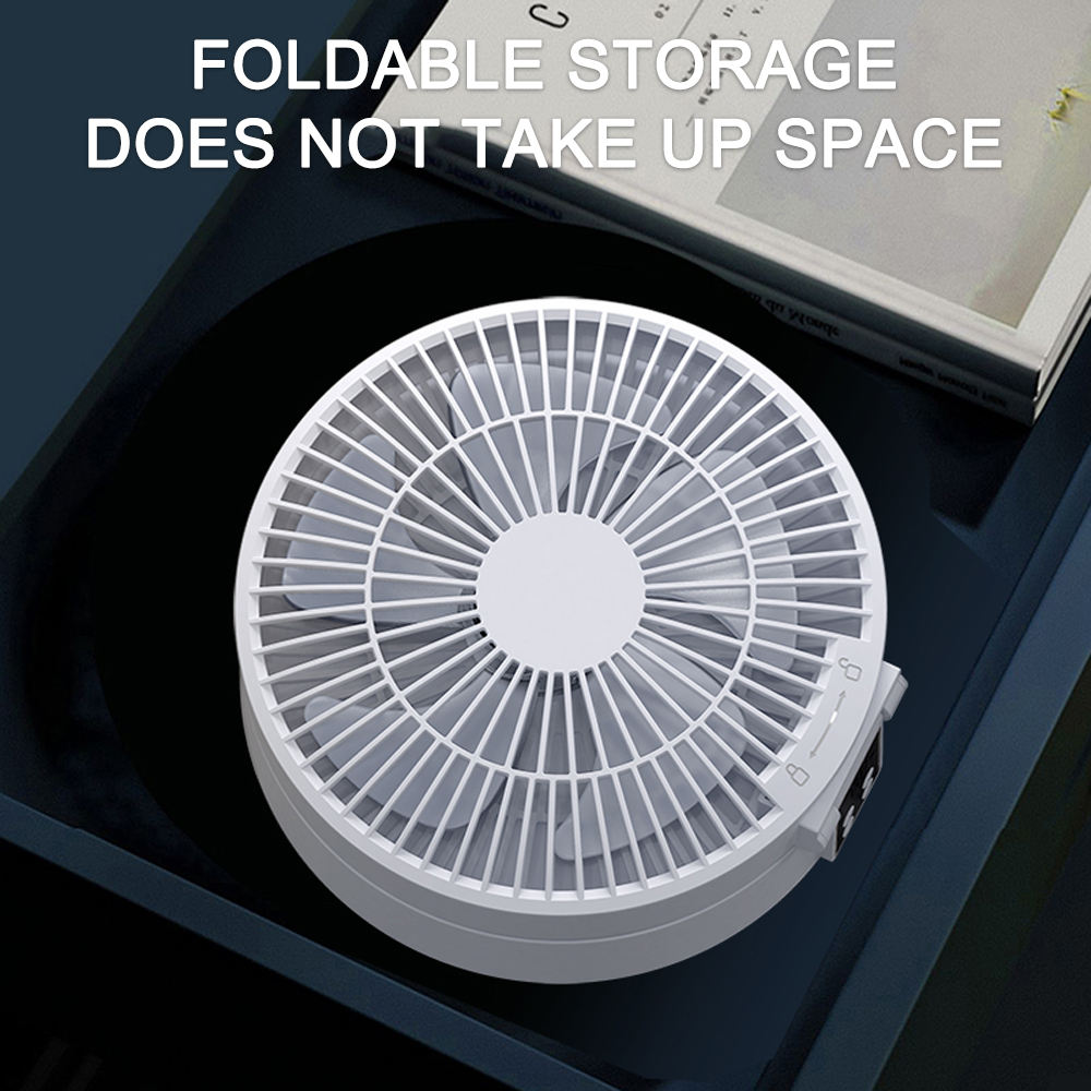 New Small Electric Rechargeable Foldable Table Fan with LED Light Digital Control Outdoor Use Plastic Material